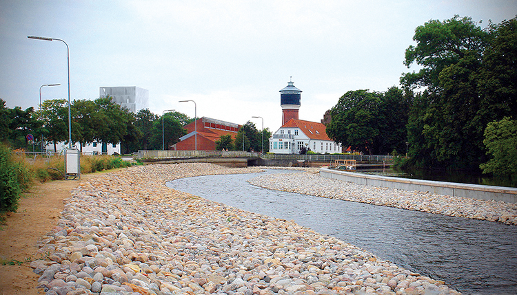Požeminės talpyklos naudojamos vandeniui nuo senojo savivaldybės pastato stogų surinkti, o šiuo vandeniu laistomas apželdintas stogas.